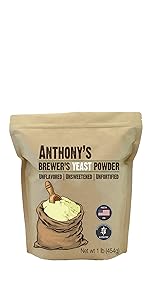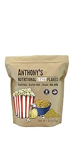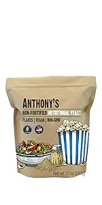 Anthony's Premium Nutritional Yeast Flakes, 10 oz, Non Fortified, Batch Tested Gluten Free, Non GMO